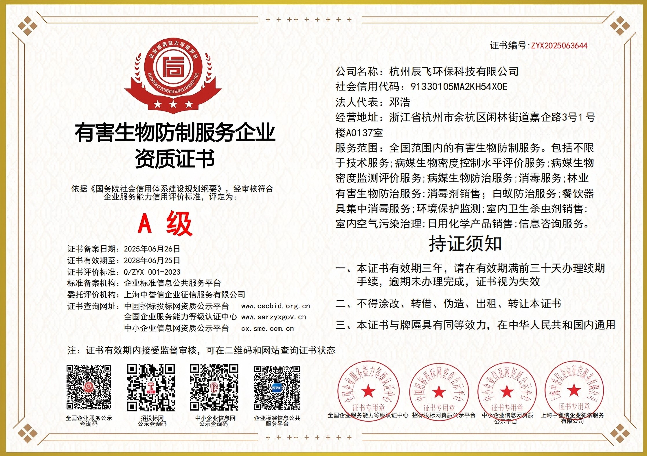 杭州辰飛環(huán)??萍加邢薰臼且患覍?zhuān)業(yè)的PCO有害生物防治服務(wù)機(jī)構(gòu)。是經(jīng)杭州市工商局注冊(cè)登記、杭州市白蟻防治管理所、PCO協(xié)會(huì)批準(zhǔn)的城市害蟲(chóng)綜合治理消殺公司,是集除四害、白蟻消殺、除蟲(chóng)、消毒殺菌、室內(nèi)空氣污染治理、藥械銷(xiāo)售于一體的大型專(zhuān)業(yè)杭州有害生物防治科技有限公司。主要從事新建、擴(kuò)建、改建、裝飾裝修單位建筑物的白蟻防治和白蟻預(yù)防工程,同時(shí)從事工廠(chǎng)、酒店、企事業(yè)單位、住宅小區(qū)和家庭的”四害”消殺和白蟻防治服務(wù),長(zhǎng)期向各類(lèi)型客戶(hù)提供杭州白蟻消殺、除蟑螂、除老鼠、除蟲(chóng)、消毒殺菌等優(yōu)質(zhì)服務(wù)。 本公司自成立以來(lái),秉承“誠(chéng)信、敬業(yè)、高效、務(wù)實(shí)”的發(fā)展原則,以現(xiàn)...